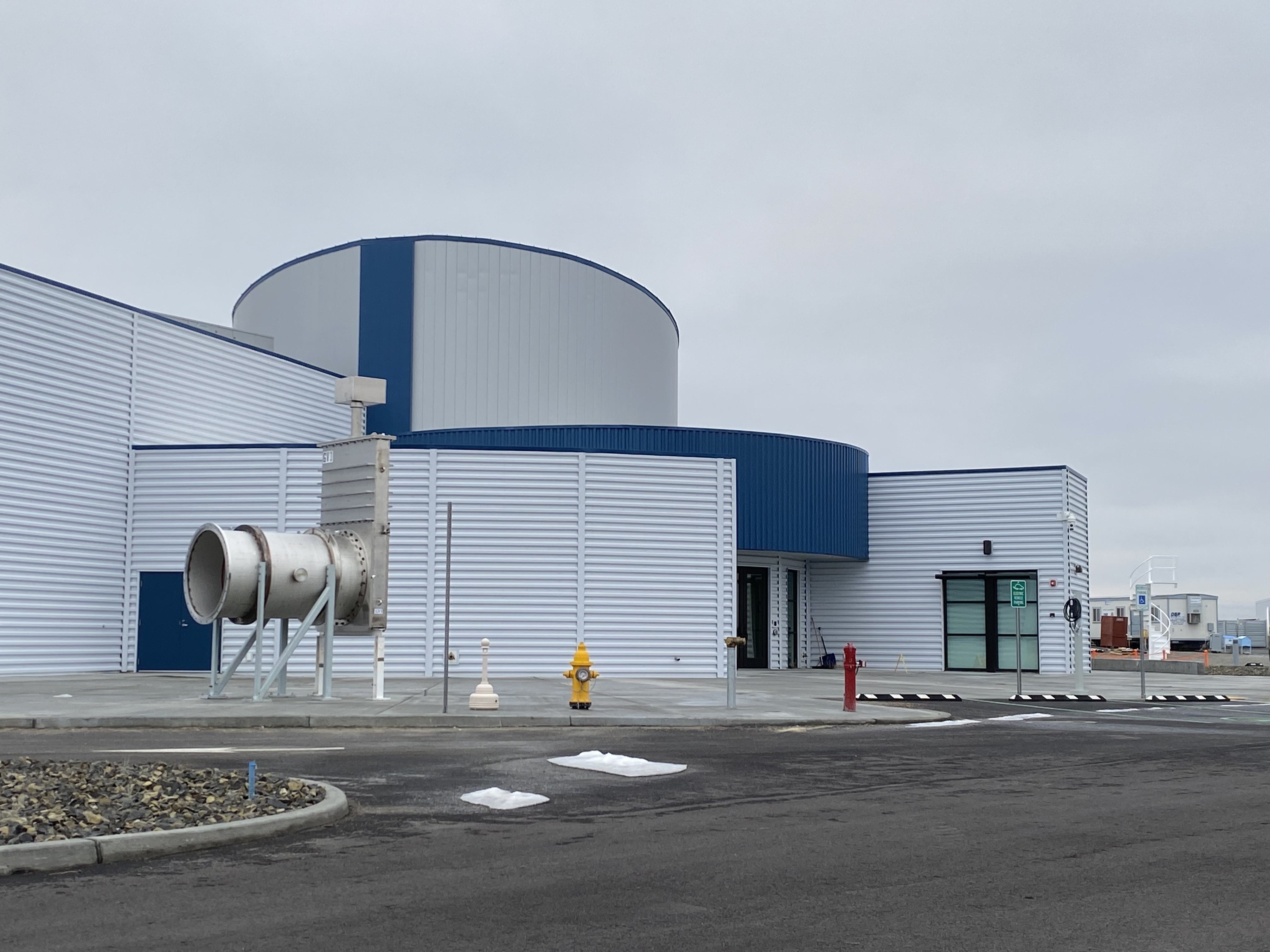 Panoramic view of LExC exterior, including the 'beamtube enclosure' segments that visitors will walk through on their way from the auditorium to LExC's exhibit hall. Credit: Caltech/MIT/LIGO Lab (Amber Strunk)